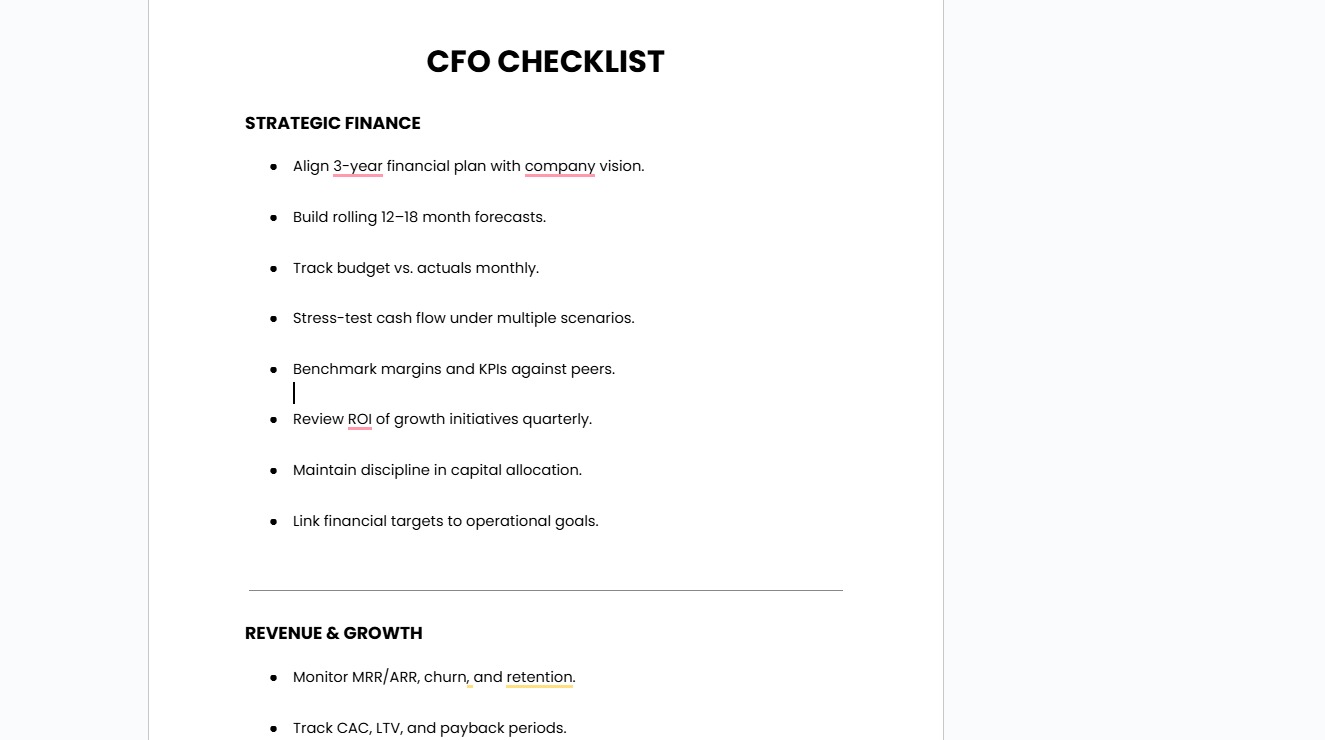The Ultimate CFO Checklist for Founders